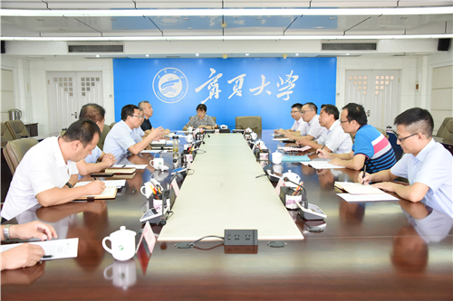 【宁夏大学新闻中心讯 龚旭峰/文、图】8月15日,武汉轻工大学党委常委、统战部部长汪德平一行访问我校,双方围绕校际合作进行了交流座谈。校党委副书记王玉炯出席座谈会。校党委常委、统战部部长何凤隽主持座谈会。