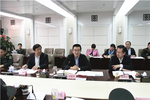 随后,在A区主楼十一楼会议室召开的座谈会上,校党委书记金能明、校长何建国、党委副书记赵利宁和党办、宣传部、校办、学生处、选培办、国防教育中心相关负责人参加了座谈。