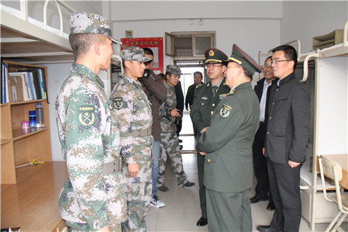 昌业廷一行先后到C区国防生之家、国防生军事综合训练场、国防生公寓楼进行参观,并与国防生进行亲切交谈。