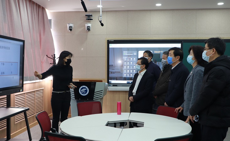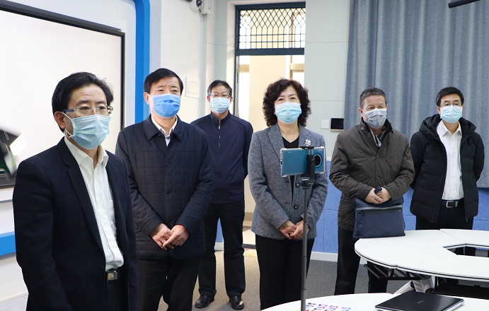 【宁夏大学新闻中心讯 李明花/文、图】3月2日,新学期开学第一天,经过认真准备,宁夏大学全校线上教学活动如期开启。教育厅副厅长王春秀、校党委书记李星、校长何建国、纪委书记周运生、副校长周震、教育厅高教处处长翟家驹到兰山1教实时查看了我校“雨课堂”、腾讯会议、QQ群等线上教学情况,观摩了物理与电子电气工程学院教师高永伟的《数学物理方程》授课情况,并与2018级电子信息工程专业(卓越工程师)1、2班的同学进行远程互动,向大家表示亲切问候。