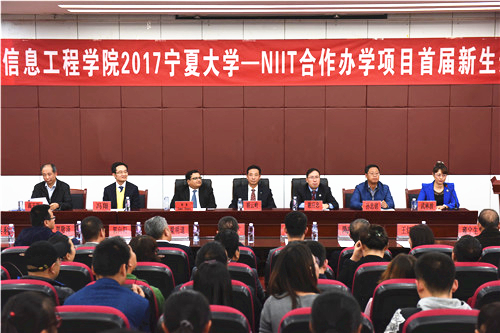 【宁夏大学新闻中心讯 胡玥/文 龚旭峰/图】10月11日,2017宁夏大学-NIIT合作办学项目首届新生开学典礼举行。信息工程学院158名NIIT合作办学的新生与40名研究生齐聚宁夏大学。