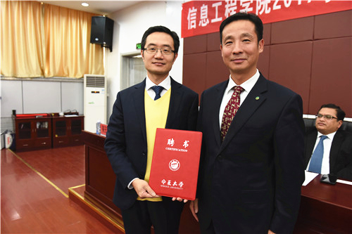 会上,第十批国家“千人计划”创业人才,上海汉物天物联网技术有限公司创始人、宁夏三才物联科技有限责任公司董事长冯翔等15名企事业单位人员被聘为我校特聘教授和客座教授。