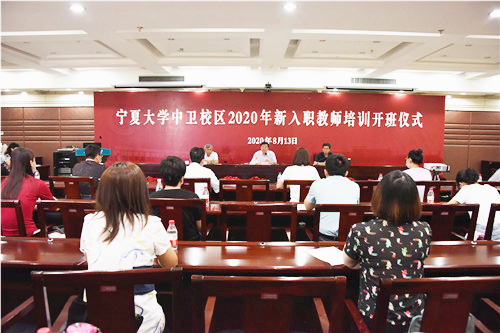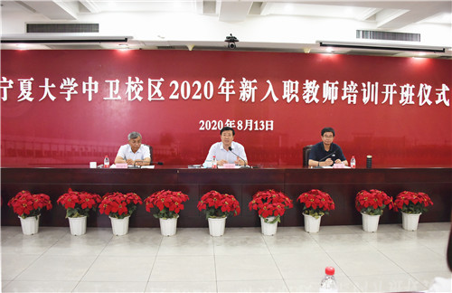 【宁夏大学新闻中心讯 教师教学发展中心/文 龚旭峰/图】8月13日,我校中卫校区2020年新入职教师培训开班仪式在贺兰山校区德勤楼举行。校长何建国出席并作动员讲话,校党委常委、副校长周震主持开班仪式。