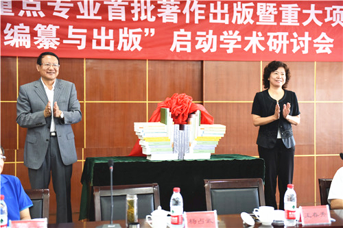 自治区教育厅副厅长王春秀、副校长马应虎共同为自治区重点学科、重点专业首批学术著作揭幕。