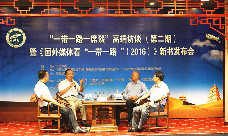 【宁夏大学新闻中心讯 胡玥/文 张景 乔星/图】6月24日下午,“一带一路一席谈”高端访谈第二期暨《国外媒体看“一带一路“(2016)》新书发布会在我校国际教育学院中国文化体验中心举行。
