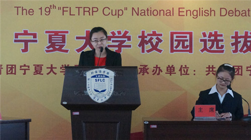 【宁夏大学新闻中心讯 团委】4月6日下午,由校团委主办,外国语学院团委承办的我校第十九届校园科技文化艺术节系列活动之"外研社杯"全国大学生英语辩论赛宁夏大学校园选拔赛决赛在外国语学院报告厅举行。校团委、外国语学院相关负责人和师生代表参加了该活动。