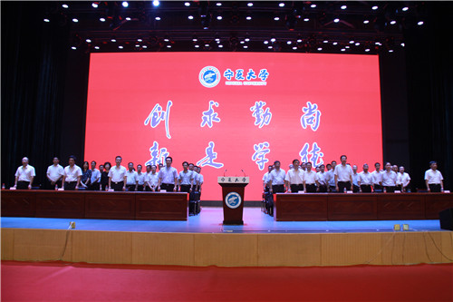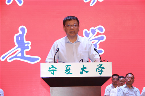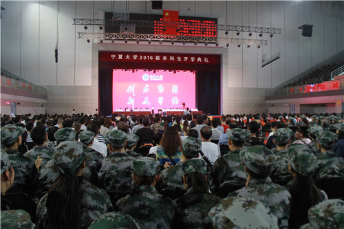 何建国代表学校向来自全国各地的2016级的4499名新同学表示衷心的祝贺和热烈的欢迎,欢迎他们加入到宁夏大学的大家庭中来。他表示,大学对于年轻人是契约亦是责任,是情怀亦是担当,大学的根本使命在于培养人才,得天下英才而育之,是每一个教育工作者的梦想,育天下英才而成之,是每一个教育工作者的期望。他认为,大学里要立德、立思、立行。立德树人是大学的根本使命,立思就是要有明辨的精神,立行就是要乐于行动、善于行动。立德是基础也是归宿,立思是方法是智慧,立行是表现是作风,这三者相辅相成,缺一不可,只有把它们完美的集于一身,才能把自己的大学生活过得精彩,才能够将自己的人生过得精彩。他希望同学们能够始终做到不忘初心、继续前行、善于学习、乐于历练、勤于锻炼、全面发展,经过四年大学的学习,能够修君子之德、树君子之思、成君子之行,四年之后,从立德、立思、立行过程中收益终生,成为人生的赢家、社会的栋梁。