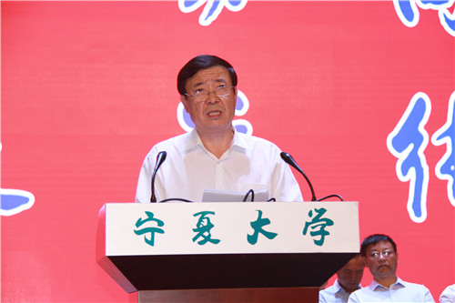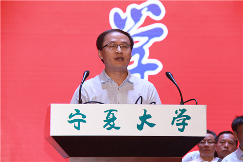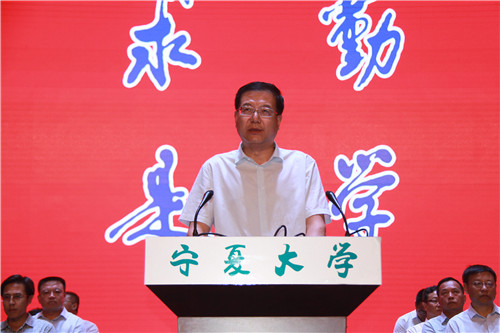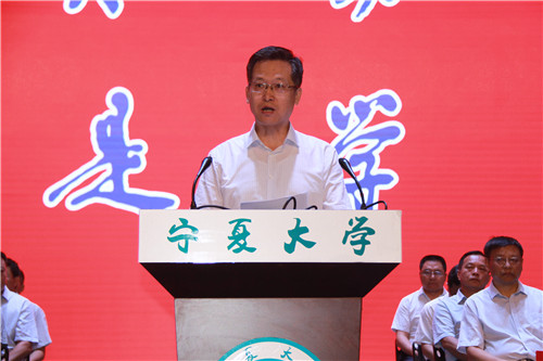 王宏伟代表宁夏大学向大家问好,并宣布开学典礼正式开始。