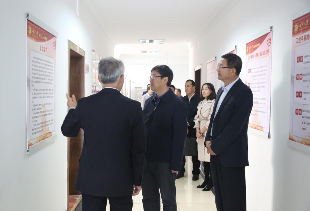 校党委常委、宣传部长张立杰介绍了学校宣传思想工作情况;校党委常委、组织部长韩惠丽介绍了学校党建工作情况;学生处处长罗进德介绍了学校“三全育人”综合改革工作情况;人事处副处长任磊介绍了学校人才队伍建设情况;马克思主义学院党总支书记沈岩东从学生培养、项目科研、课程改革、社团建设等方面介绍了马克思主义学院建设情况。