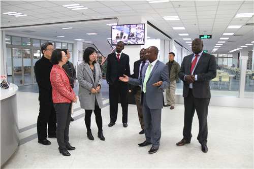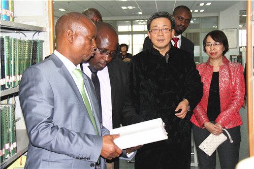 会后,Mbugua Kinuthia郡长一行登上主楼楼顶鸟瞰宁夏大学全景并参观了C区图书馆。