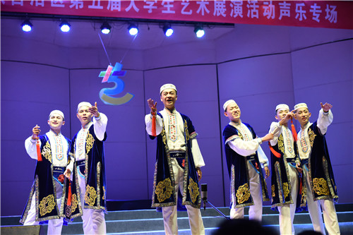 下午,自治区教育厅党委副书记、自治区教育厅副厅长撒承贤,我校党委书记金能明、副书记王宏伟和展演单位师生一起,在宁夏大学音乐学院音乐厅观看了首场声乐节目专演。声乐节目分为甲组(非艺术类)、乙组(艺术类)两类,依据人数分为合唱、小合唱两种形式。从传统经典曲目到现代流行曲目,从民族歌曲到异域音乐,风格迥异,悦耳动听,整个音乐厅飘荡着欢快的气息。在指导教师娴熟的指挥下,全区各大高校的选手全身心投入,倾情表演,丰富的情感表现和良好的艺术表现力深深地感染了听众,赢得阵阵掌声。