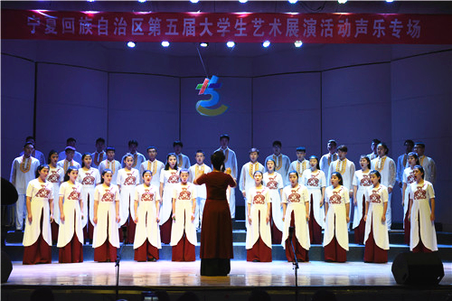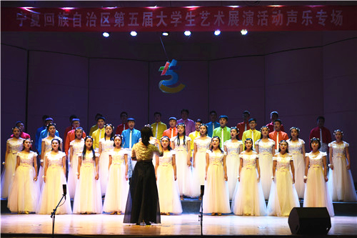 全区第五届大学生艺术展演活动由宁夏回族自治区教育厅主办、宁夏大学承办、宁夏日报“掌上宁夏”协办。本次展演活动以“理想与信念”为主题,展演活动的项目分为艺术表演类、大学生艺术实践工作坊、艺术作品类(含学生艺术作品和高校校长书画摄影作品)、高校艺术教育科研论文报告会四大类,参加对象为全日制普通高校的在读本科生、专科生以及全脱产研究生,于11月13日至17日在宁夏大学进行声乐、器乐、舞蹈、戏剧和朗诵四场专场展演,本次展演全区共有15所高校参与,收到艺术表演类作品共99个,其中合唱24个、舞蹈25个、器乐18个、朗诵20个、戏剧12个;艺术作品共收到368件,其中甲组收到268件作品,乙组收到100件作品;收到高校艺术教育科研论文47篇;艺术工作坊9间。