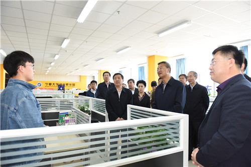 袁进琳一行先后来到西夏学研究院、省部共建煤炭高效利用与绿色化工国家重点实验室,听取相关负责人的汇报,查看学术研究成果,了解科研项目进展情况。在创新创业学院,袁进琳参观了学生创新创业工作室,与师生们进行深入交流,了解他们创新创业的情况。