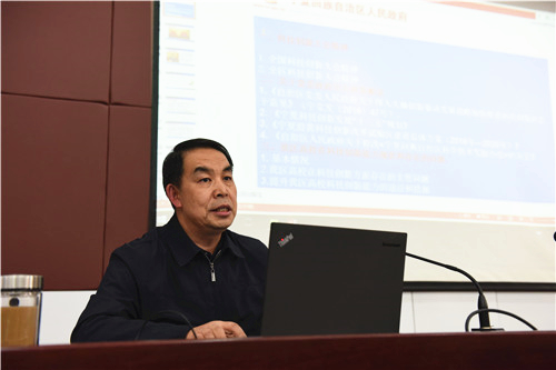 【宁夏大学新闻中心讯 张景/文 龚旭峰/图】为深入学习宣传贯彻全国、全区科技创新大会精神,12月16日,自治区政府副主席姚爱兴来校作科技创新大会精神宣讲专题讲座。校党委书记金能明主持讲座。