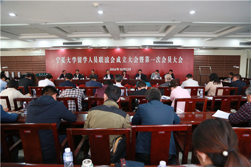 【宁夏大学新闻中心讯 党委统战部】10月12日,我校留学人员联谊会成立大会暨第一次会员大会在贺兰山校区6楼会议室召开。自治区党委统战部副部长魏莉、自治区教育工委副书记赵建峰等自治区有关部门领导及校党委副书记、校长何建国、副校长马宗保出席了成立大会。校党委副书记赵利宁主持了会议。