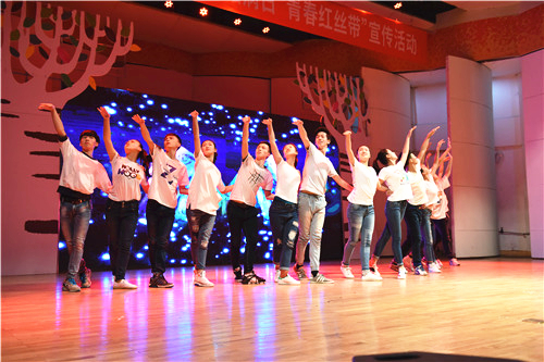 在随后的演出中,舞蹈《梦飞翔》、男生独唱《海燕》、配乐诗朗诵《飘扬的红丝带》、手语舞《爱你的人》、小品《爱是责任》等形式多样的表演对同学们进行了艾滋病知识和性健康防治宣传教育,鼓励大学生积极投身艾滋病志愿者队伍。