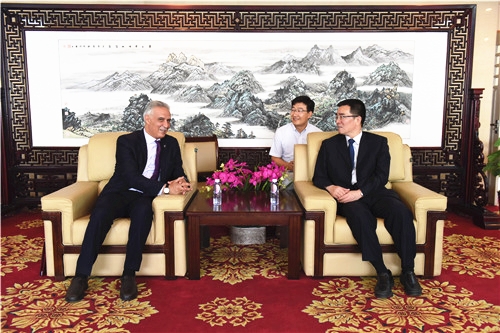 【宁夏大学新闻中心讯 胡玥/文 龚旭峰/图】7月4日,校党委书记金能明在贺兰山校区主楼十二楼贵宾室回见了摩洛哥哈桑一世大学校长纳吉蒙丁一行。这是2015年12月金能明率团访问哈桑一世大学后,哈桑一世大学校长对我校的回访。