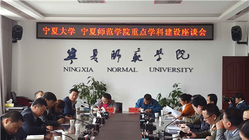 【宁夏大学新闻中心讯 发展规划与学科建设处、联合办学工作办公室】5月25日下午,我校与宁夏师范学院重点学科建设座谈会在宁夏师范学院举行。宁夏师范学院科研处处长魏金和,我校发展规划与学科建设处处长李建设,副处长陈晓芳、李举,以及宁夏师范学院相关院系及重点学科负责人参加了会议。