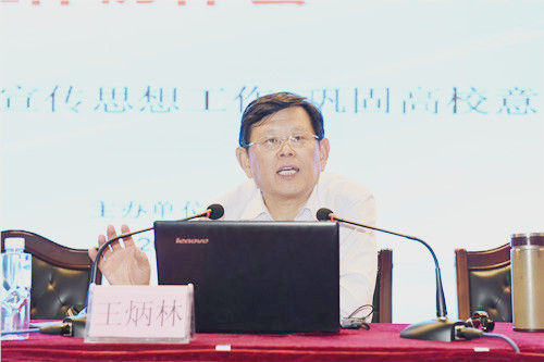 教育部高等学校社会科学发展研究中心主任王炳林作了题为《关于高校意识形态工作的几个问题》的专题报告。他从高校意识形态工作面临的新形势、高校意识形态工作的主要任务、构建高校意识形态工作的大格局三个方面解读了新形势下如何做好高校意识形态工作。他指出,意识形态历来是影响社会发展的重大问题。高校是意识形态工作的前沿阵地,一些苗头性、倾向性问题要引起重视。高校意识形态工作要深化理论武装,坚定理想信念,加强社会主义核心价值观教育,壮大主流意识形态舆论,掌握高校舆论主阵地。推动文化传承创新,培育和弘扬大学精神。构建全员全过程全方位育人格局,切实加强党对高校宣传思想工作的领导。