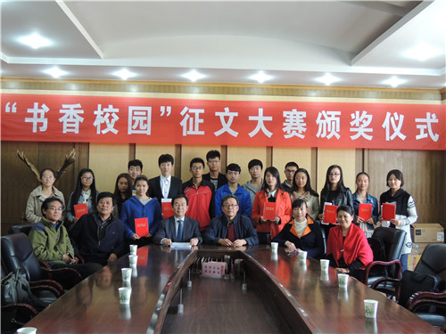 【宁夏大学新闻中心讯 图书馆 陆凤红/文 赵明/图】10月21日下午,由图书馆与团委联合主办的2015“书香校园”征文大赛颁奖仪式在图书馆三楼会议室举行。图书馆蔡永贵馆长、门建新副馆长、B区阅览部的职工代表及获奖学生参加了颁奖活动。