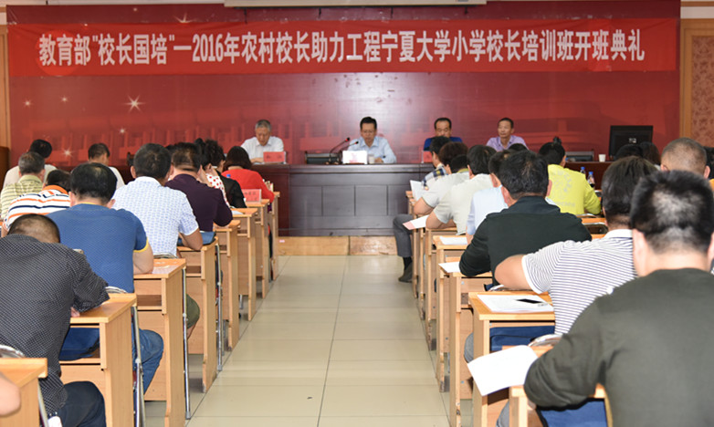 【宁夏大学新闻中心讯 宁夏高等学校师资培训中心 熊莉萍】9月2日上午,教育部“校长国培计划”——2016年农村校长助力工程宁夏大学小学校长培训班开班典礼在宁夏高等学校师资培训中心举行。校党委副书记赵利宁,宁夏高等学校师资培训中心班子成员和10所基地学校负责人以及来自全国16个省、市的50名小学校长参加了开班典礼。中心主任和润主持开班典礼。