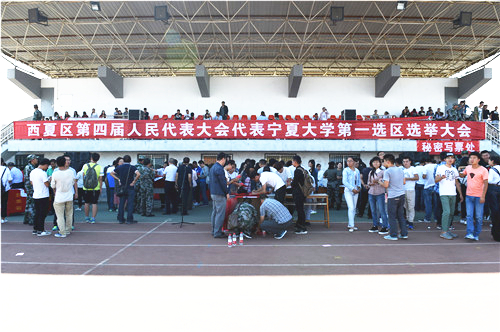 经西夏区选举委员会批复,9月7日下午,宁夏大学的三个选区分别举行了西夏区第四届人民代表大会代表选举大会。为方便选民投票,选举大会在宁夏大学贺兰山校区、怀远校区、文萃校区和新华学院共设置了3个主会场和4个分会场,各会场均悬挂横幅会标或通过电子大屏幕投放选举大会信息和相关普法知识宣传标语,并设置多部票箱、秘密写票处等,营造良好的选举环境,同时组织充足力量维持大会秩序。
