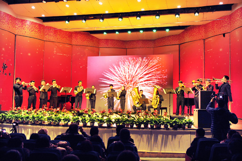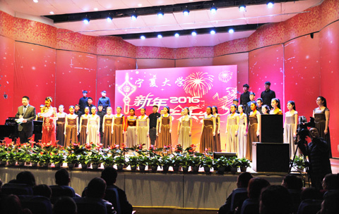 【宁夏大学新闻中心讯 胡玥/文 黄二宁/图】12月30日下午,我校2016年新年音乐会在贺兰山校区音乐厅精彩上演。校领导赵利宁、谢应忠、许兴和师生代表一起观看了演出。