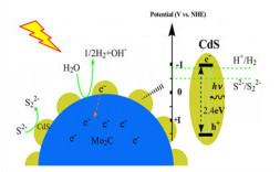 据了解,利用太阳能通过光催化剂分解水制氢研究,是新能源领域研究的前沿热点之一。目前,光催化剂主要由半导体主催化剂和贵金属(铂、金、钌、铑)产氢助催化剂构成,贵金属的使用导致光催化剂成本昂贵,如何降低光催化剂的成本是该研究领域的难点。该研究开发了一种由CdS为主催化剂,Mo2C为非贵金属产氢助催化剂构成的Mo2C/CdS光催化剂。实验结果证实,该催化剂产氢活性分别是CdS活性的10倍和贵金属催化剂Pt/CdS活性的2.3倍以上,而且该催化剂稳定运行50小时,催化活性没有明显降低。主要原因是Mo2C表面形成的氧化钼层抑制了产氢的逆反应,Mo2C和CdS之间形成的CdMoO4促进了光生电子的有效传输。