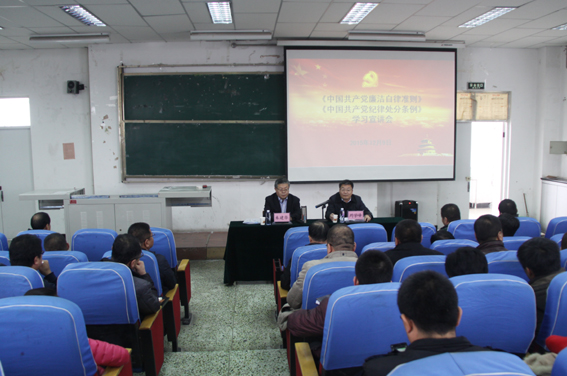 【宁夏大学新闻中心讯新华学院党委工作部/文、图】为使广大党员干部深刻领会《中国共产党廉洁自律准则》和《中国共产党纪律处分条例》(以下简称准则、条例)的精神实质。12月9日下午,新华学院特邀宁夏医科大学纪委书记朱建华作了专题学习宣讲会,学院党委书记周学峰主持会议,新华学院领导及全体教职工党员、部分学生党员聆听了讲座。