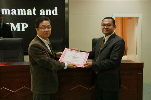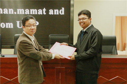 机械工程学院院长朱学军还为Rizalmat.Bin Mamat院长颁发了宁夏大学客座教授聘书,同时聘任Ruzaimi博士为机械工程学院“卓越工程师教育培养计划”海外指导教师。