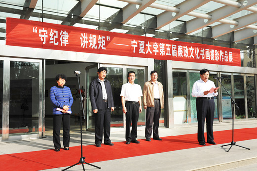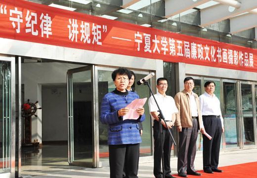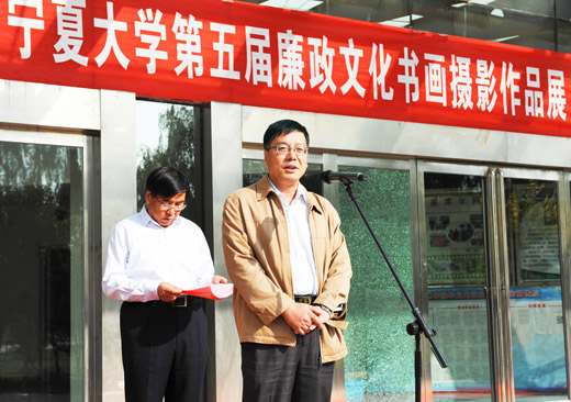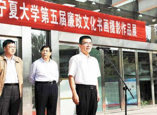 随后,金能明宣布宁夏大学第五届廉政文化书画摄影作品展开幕。