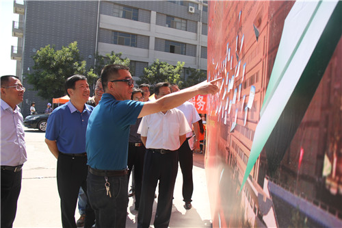 校门口伫立的红色“梦想墙”引起了校领导的关注。那一个个“努力学习当学霸”、“好好学习,努力考研”······的小小梦想引起了在场领导的讨论。何建国说:“这些话语虽然稚嫩,但是想法却很实在”。