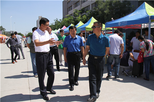 【宁夏大学新闻中心讯 穆苗苗/文 龚旭峰/图】初秋的气息漫过凤城,宁大的校园却依旧夏意正浓,9月6日,在全校师生的期盼中,我校2015级新生踩着炽热的阳光而来,如约相聚在宁大。为深入了解各学院新生入学情况,校党委书记金能明、校长何建国、党委副书记赵利宁在党办、校办、学生处、保卫处等部门负责人的陪同下,来到C区迎新工作点,看望报到新生并慰问迎新工作人员。