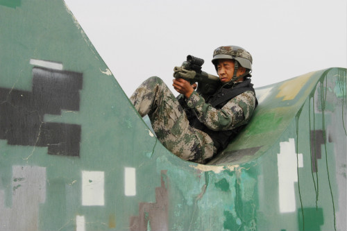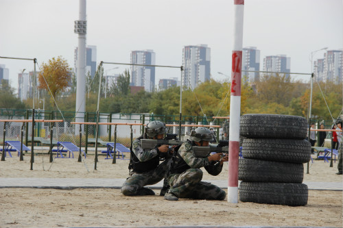 一声令下,激战开始,奔跑的身影疾如风,徐如林,他们尽情地呐喊,开枪狙击,使得比赛现场瞬间成为“迷彩”的海洋……每位参赛队员充分利用我校国防生综合训练场障碍地形,借掩体迂回前进,倚高地全神狙击,敌我厮杀,灵巧躲闪,迅速占领对方阵地。战斗的声音在天空激荡,青春的热血在训练场挥洒。随着比赛进入“白热化”,越来越多的“烈士”为集体捐躯,但成败不是结果,团队的合作才是真正的胜利。