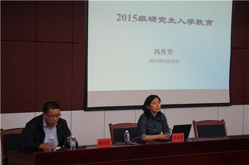 从2015级研究生新生开始,我校研究生培养工作全面实行信息化、电子化管理,冯秀芳还对新生信息网上确认、排课、选课、中期考核、学位授予等培养环节注意事项进行了详细地说明。在对我校旨在提高研究生培养质量而实施的一系列创新计划的介绍后,冯秀芳希望同学们能够在求学的道路上勇于探索,认真实践,把自己塑造成为全面发展的优秀人才。
