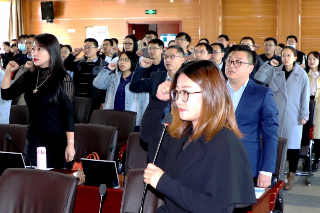 开班仪式前,全体人员共同奏唱国歌,新入职教师在李乐的带领下作了入职宣誓。
