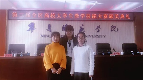 【宁夏大学新闻中心讯 外国语学院】12月1日至2日,在自治区“第三届全区高校大学生教学技能大赛”上,外国语学院杨景雯同学获中学英语组(师范类)一等奖,赵萌萌同学获二等奖。