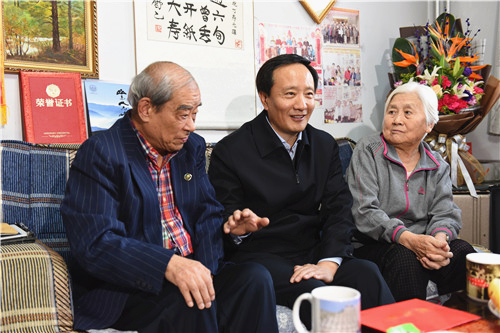 【宁夏大学新闻中心讯 胡玥/文 龚旭峰/图】新年伊始,自治区党委书记李建华在自治区组织部、人社厅、教育厅等部门负责人的陪同下慰问我校退休教授,代表自治区党委、政府对他们为宁夏发展做出的贡献表示感谢,向他们致以诚挚的节日问候,祝愿老同志新年愉快、健康长寿。校党委书记金能明陪同慰问。