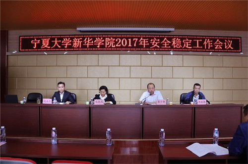 新华学院在9月26日召开的2017年安全稳定工作会上,学院主要负责人传达了近期有关学校安全稳定工作的相关文件精神并就学院安全稳定工作做了相关部署。要求与会人员加强思想政治教育工作和党的建设工作,要坚决按照党中央、自治区党委、宁夏大学党委及学院党委对党员干部的要求,积极有效地进行学习,在实际工作中践行。