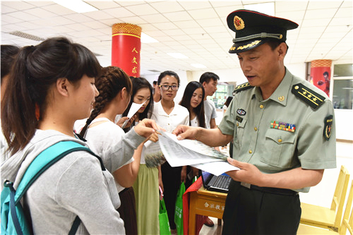 报告会后,自治区征兵办还在活动现场现场开设了咨询报名点,向大学生解读了征兵政策,为有报名参军意向的学生当场解疑释惑。