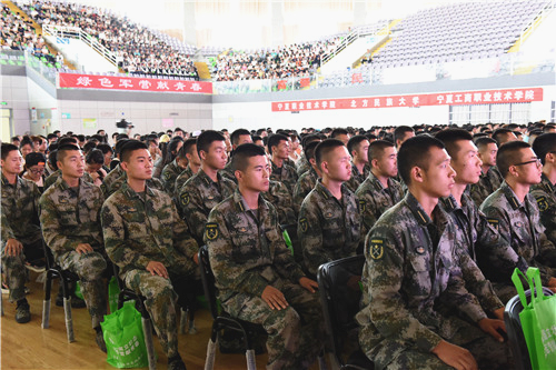 【宁夏大学新闻中心讯 胡玥/文 龚旭峰/图】6月15日,在我校文萃校区大学生活动中心,来自全区18所高校分管征兵工作的相关领导和师生代表2000余人参加了自治区大学生征兵宣传集中教育活动。这是自治区征兵办联合教育厅、宁夏大学等单位举行的全区大学生征兵宣传集中教育活动的一项重要内容,这也标志着我区今年大学生征兵工作的全面启动。