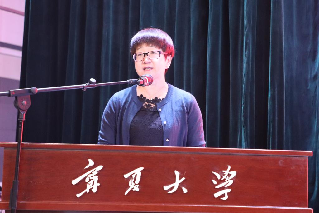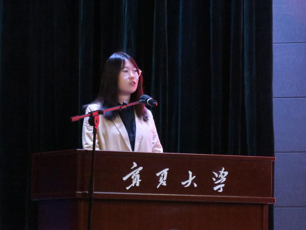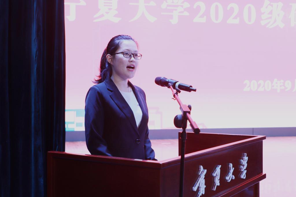 西部生态与生物资源开发联合研究中心博士生导师钟艳霞教授作为导师代表发言。她希望同学们在未来的求学道路上强健体魄,磨练意志;夯实基础,勇于创新;品味过程,点滴成长。她表示,作为教师一定以绿叶相辅,陪伴同学们厚植于宁夏大学这片土壤。