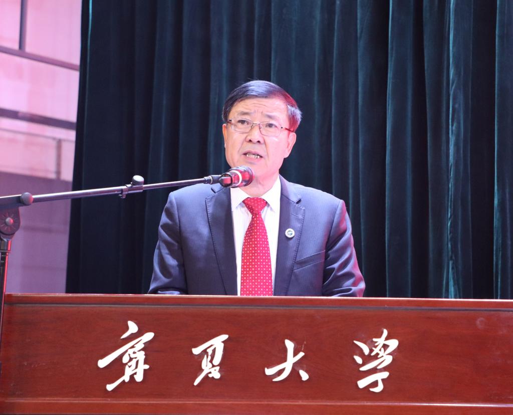 校长何建国向新生致辞。他代表学校及全校师生员工对研究生新同学的到来表示热烈的欢迎,并祝福同学们在宁夏大学书写精彩的青春篇章。