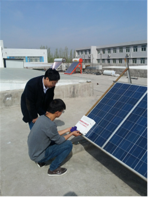 【宁夏大学新闻中心讯 新能源研究中心】4月20日,在我校新能源研究中心研究生导师李明滨和慕松老师的指导下,由研究生王子文独立设计并完成制作的倾斜壁面自动除尘机取得了试车成功。该研究是新能源研究中心根据市场需求以及用户单位反馈信息自行设定研究课题,在历时两年多时间里,经过多次改进终于完成了从图纸到样机工作。