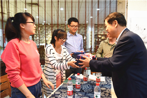 与会校领导为2016届毕业生赠送了纪念品。