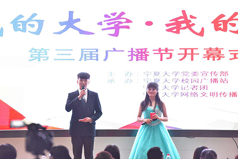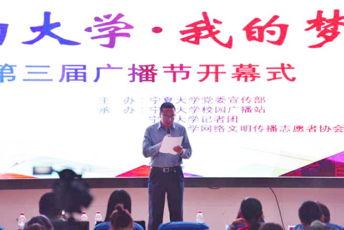 【宁夏大学新闻中心讯 学生记者 齐迎 香林寒 严丽婷】为培育和践行社会主义核心价值观,丰富校园文化生活,营造积极向上、百花齐放、格调高雅、健康文明的校园文化氛围,激励我校大学生将自己的“大学梦”融入到为学校建设发展的“宁大梦”中。5月12日,宁夏大学第三届“我的大学·我的梦”广播节开幕式在贺兰山校区文科楼东报告厅举行。来自全校各学院的学生300余人观看了开幕式。