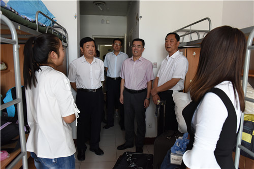 走进文萃校区公寓5号楼228宿舍,来自陕西榆林的资源环境学院新生李姣姣已收拾好床铺。校领导关切地询问李姣姣来校后的感受,并与其家长进行了交流。在文萃校区兰菊苑餐厅,校领导详细了解了饭菜的价格和品质,要求进一步提高餐厅的就餐环境和服务品质,为学生提供更加优质的服务。