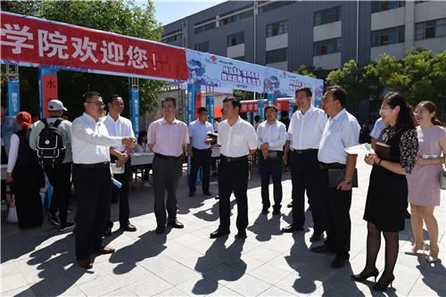 【宁夏大学新闻中心讯 胡玥/文 龚旭峰/图】9月6日,是我校新生报到第一天,校领导金能明、何建国、王宏伟、马宗保在学校相关部门负责人的陪同下到贺兰山校区、文萃校区迎新现场检查指导工作,慰问参加迎新工作的师生,与部分新生及家长进行了交流。