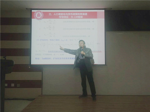讲座中,方显仓博士以当今社会的老龄化问题与中国货币政策的潜在联系为主体,分析了人口老龄化现状与老龄化呈现的六大特点,说明了人口老龄化对于社会的影响,包括对社会保障、对消费及对投资的影响。以文献综述、人口老龄化与货币政策利率渠道传导效应、人口老龄化与货币政策信用渠道传导效应、实证检验、结论与启示为题,详细讲解了他研究问题的方法及证明问题的详细过程,从而得出这样的结论:随着老龄化的发展,紧缩性货币政策的效果不确定,扩张性货币政策信用传导效果减弱,货币政策信用渠道仍具有比较优势,如果不考虑老龄化因素,货币政策信用渠道的货币政策效果强于利率渠道的效果。
