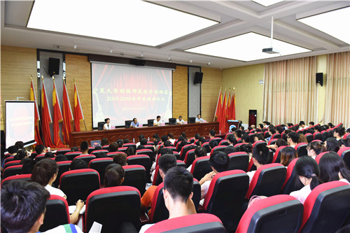 王宏伟指出,明德教师奖”的获得者,都是在一线从事师范教育的名师,具有良好师德和敬业精神的德教双馨的教师。“明德奖学金”的获奖学生综合素质良好,在日常学习生活工作中乐于助人、勇于奉献,同时学习刻苦、成绩优秀,学业成绩均排名在全年级10%以内。每两年一次的明德奖颁奖大会逐渐演变成一个赛场,它是入选明德奖的18所大学师范教育质量和水平的赛场。他希望,有关部门继续扎实推进明德奖的各项工作,在学习借鉴其他高校先进工作经验、做法的同时,又要挖掘学校特色,把明德奖的评审工作作为推动学校师范教育的抓手之一;获奖教师要发挥示范作用,立足师范教育一线,依托学院教学工作,开展教学科研活动,为学校乃至自治区的师范教育贡献力量;获奖同学要积极主动地加入“明德社”,在学校的关心与帮助下,在社会的肯定与激励下,珍惜机会,立志成才。
